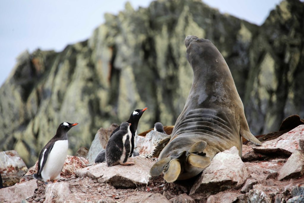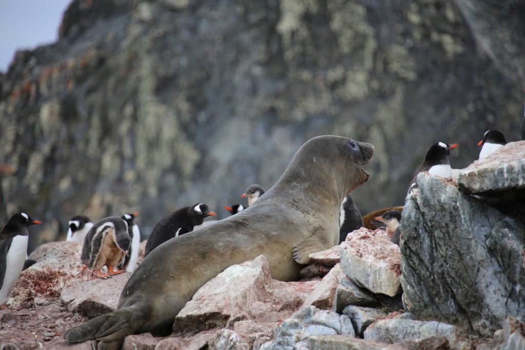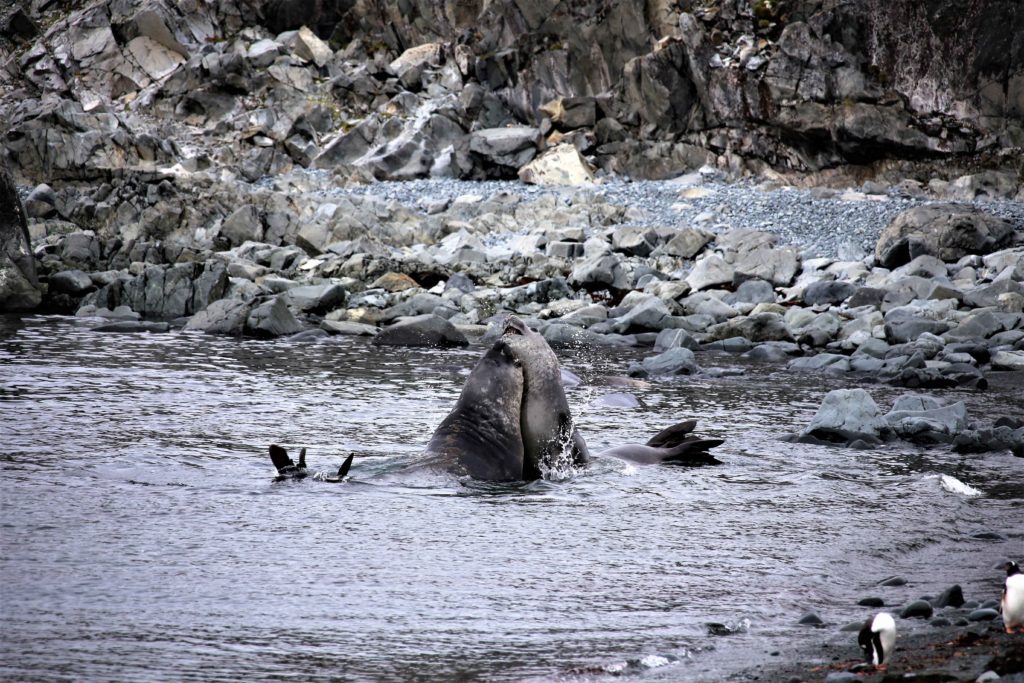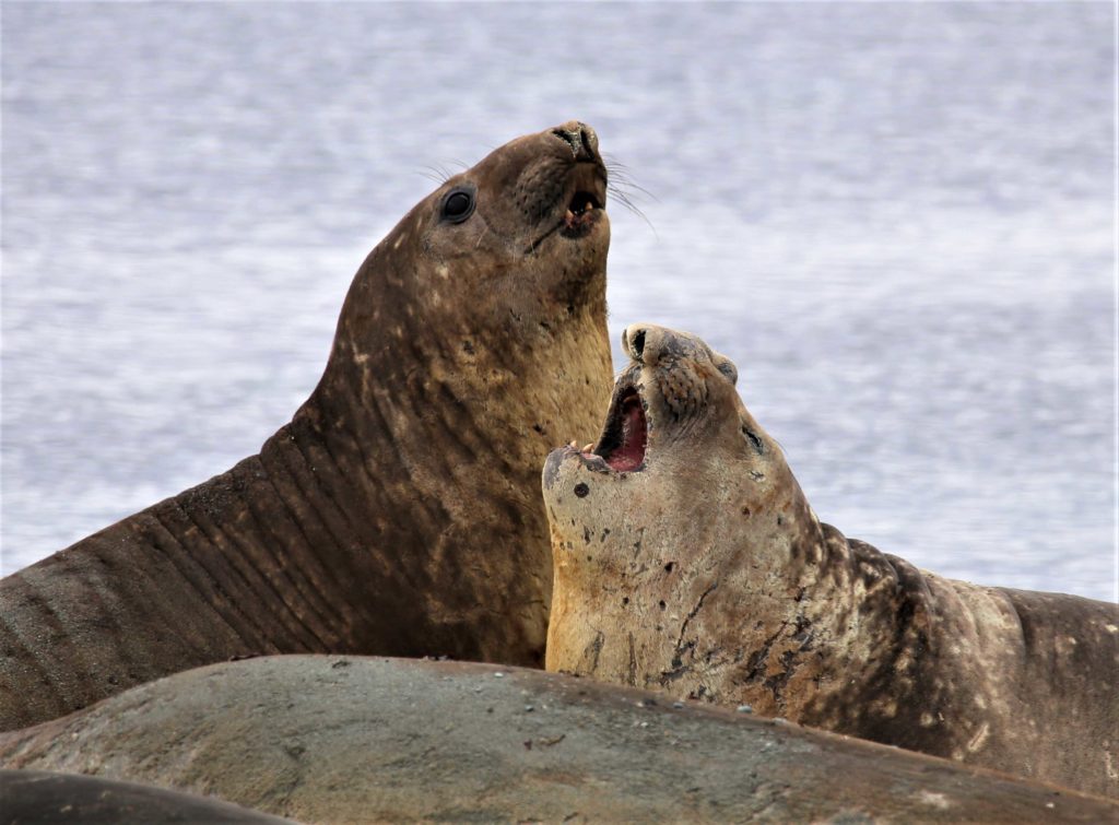 Elephant Seals hanging around on the beach, soaking up massive doses of Vitamin D, catching their breath after their marathon swims and digesting their ‘sea catch of the day’ – mostly penguin.